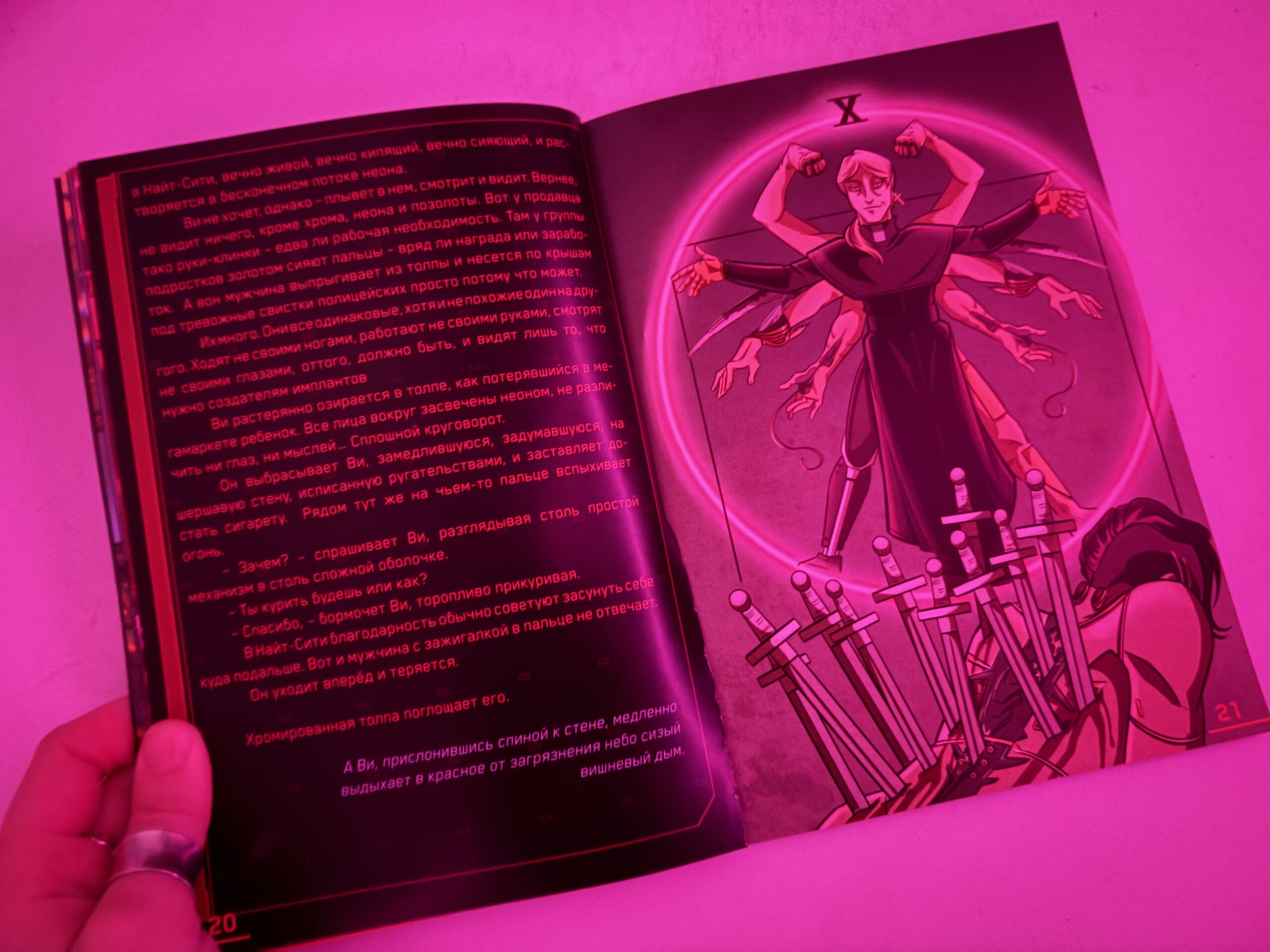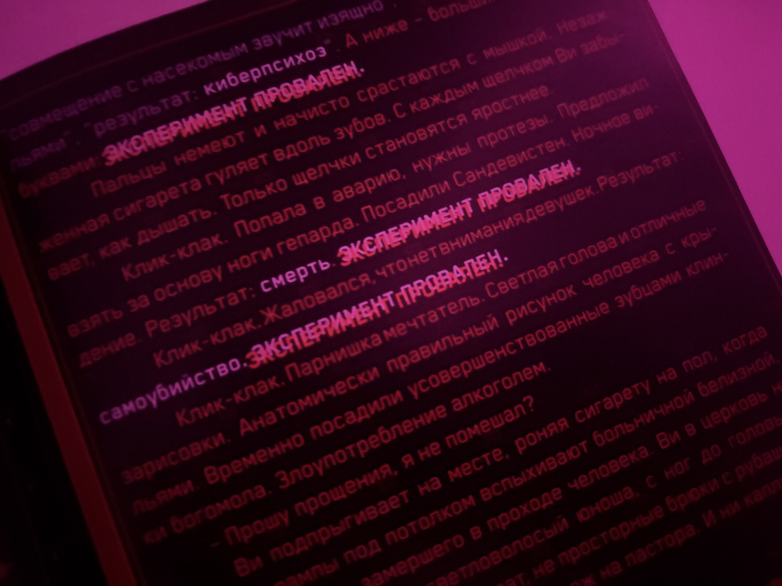 Я крутила идею текста долго. С момента подачи и до дедлайна. Я царапала заметки, мысли на бумажках, подворачивающихся под руку везде, в телефоне, в ноуте всё время: на парах, на работе, в автобусе по пути домой, за завтраком и ужином. Я отнеслась к своей миссии со всей серьёзностью (вы если эпиграф увидите — в целом, поймёте уровень моих претензий), и прикоснулась к «каноничному» киберпанку: в моём рюкзаке лежал «Нейромант» У. Гибсона, я прочитала его сборник «Сожжение хром» (и ещё один, у которого в названии очки, написанный законодателями, эталонами жанра), я прочитала тонну статей на е-лайбрари и киберленинке, чтобы выйти за пределы игры. Даже не спрашивайте, зачем я так старалась!