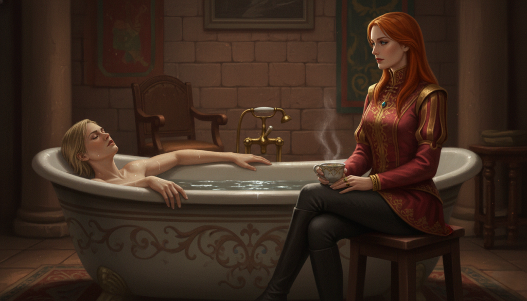 Мириам не договорила: Лелиана сложила ширму и, прислонив её к колонне, уселась на табурет рядом с ванной. На коленях у неё стоял поднос с фруктами и чашками ароматного травяного чая.
